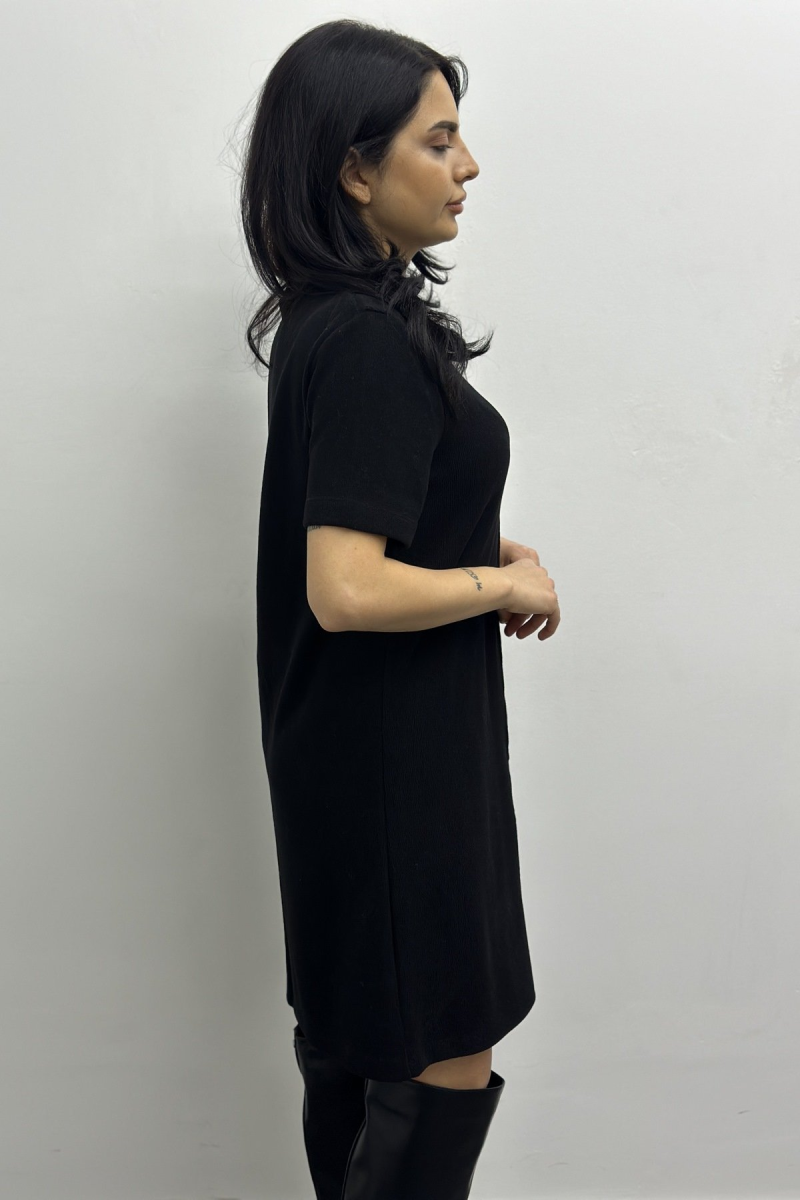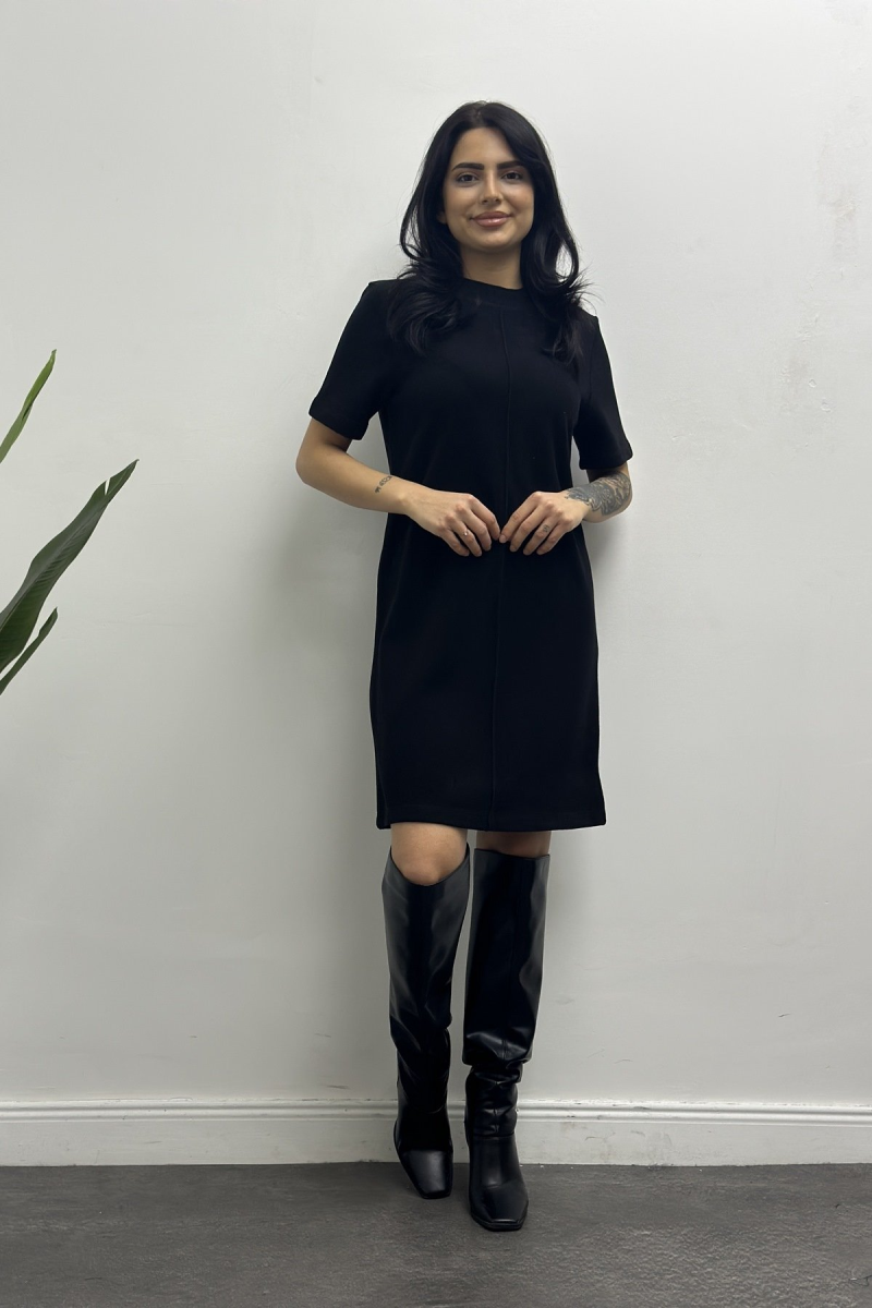 Elbise Triko Siyah Dikiş Detay