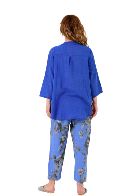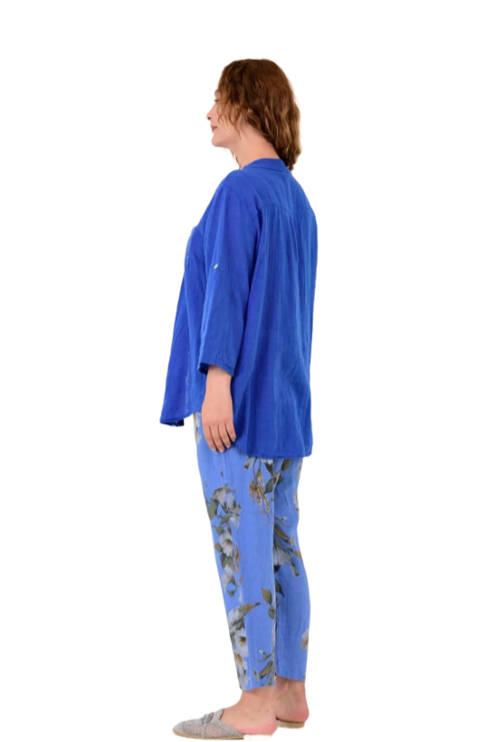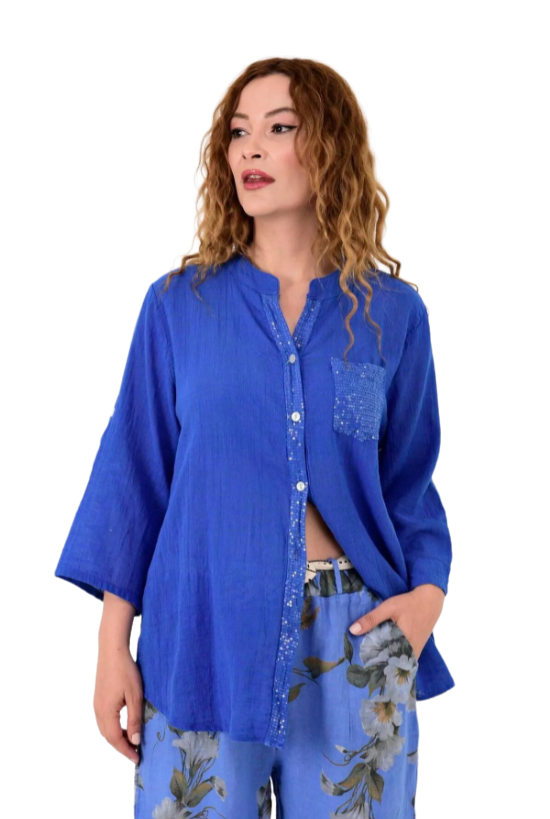 GÖMLEK KETEN MAVİ PULLU İTALYAN