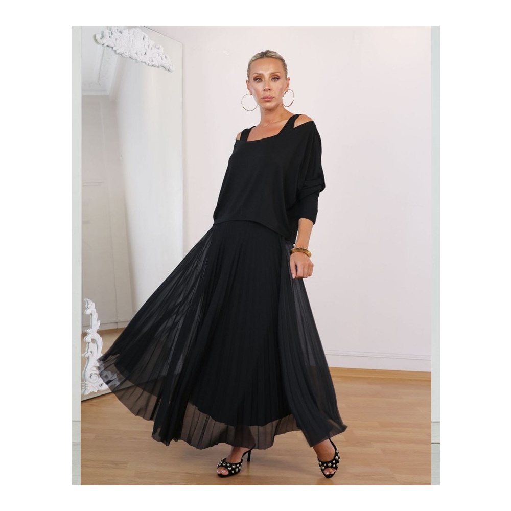 Octagon KOLLAR YEŞİL VOLANLI SİYAH ELBİSE